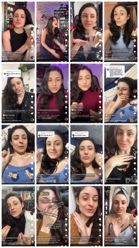 Entre maio de 2024 e junho de 2025, analisamos o perfil da criadora Aline Chaves no TikTok e identificamos um padrão recorrente de perseguição direcionada.