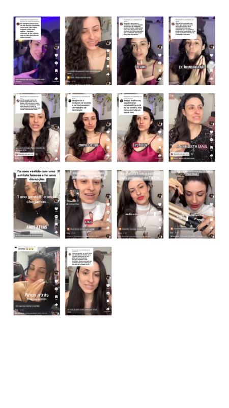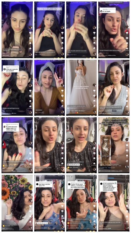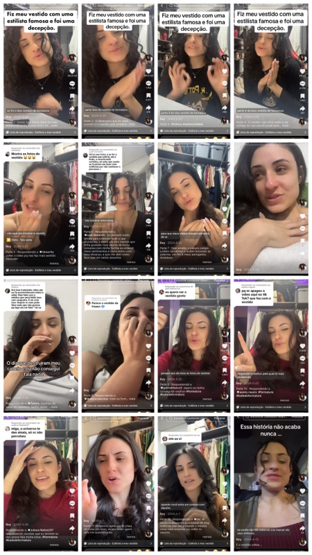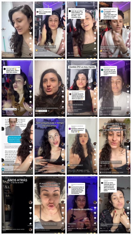 - Mesmo quando não cita o seu nome diretamente, Aline recorre constantemente a expressões como “a estilista”, “a estilista do vestido”, “a estilista polêmica do TikTok”.