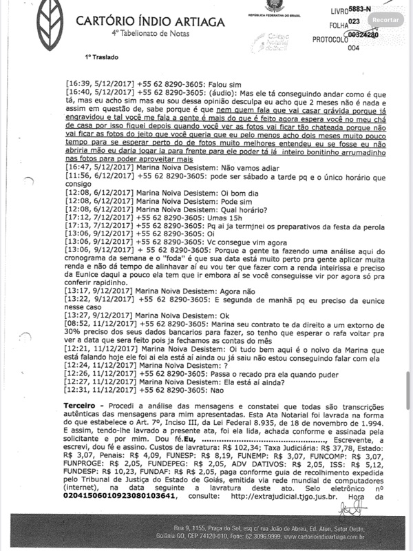 Vale ressaltar que, em nenhum moment, foi feita ata notarial das conversas apresentadas, o que poderia ter reforçado a validade dessas provas. Ainda assim, o volume de prints e a coerência temporal da narrativa sugerem consistência.