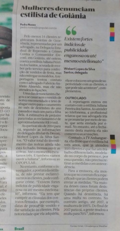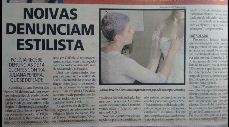 - Marina: Ex-noiva que desistiu com o vestido pronto e meses depois inventou uma versão caluniosa dos fatos, sem nenhuma prova. Quando fui à delegacia, ficou claro: a quebra de contrato foi dela, não do ateliê.