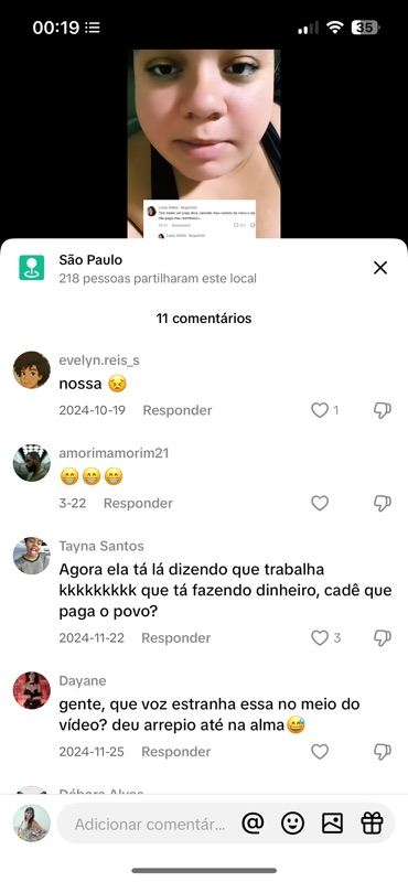 - Tayna Santos: “Agora ela tá lá dizendo que trabalha kkkkkkkk que tá fazendo dinheiro, cadê que paga o povo?”