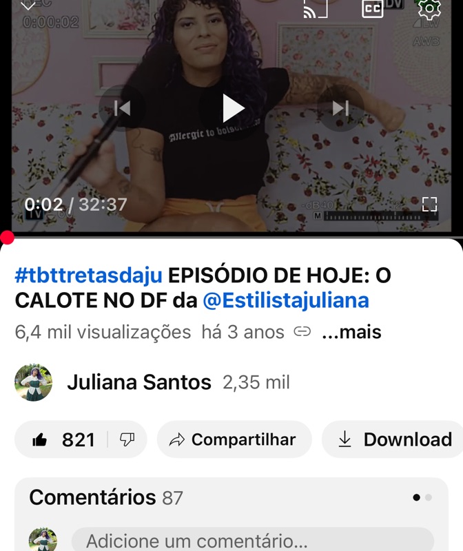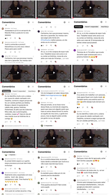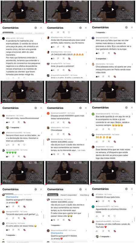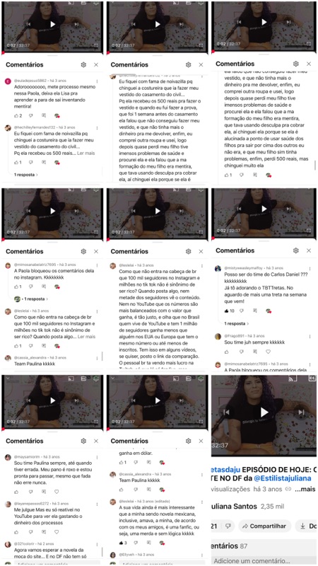 Nos prints dos comentários do vídeo original do seu canal (2021), vemos: