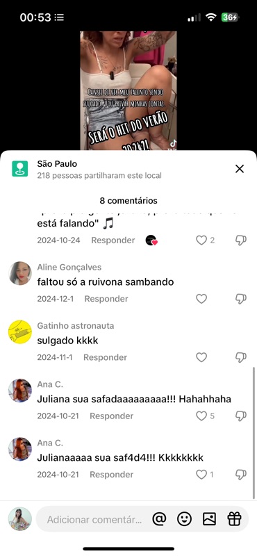 - “Julianaaaa sua saf4d4!!! Kkkkkkkk”