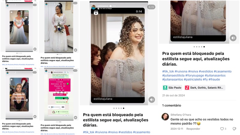 Esse post segue exatamente o padrão do perfil: repostam stories seus mostrando as noivas, sem qualquer contexto, apenas para tentar fomentar comentários negativos. O foco nem é a celebração das noivas ou do vestido, mas sim alimentar a audiência do perfil com conteúdo cotidiano seu, esperando que eventualmente apareça algum ataque ou piada nos comentários.