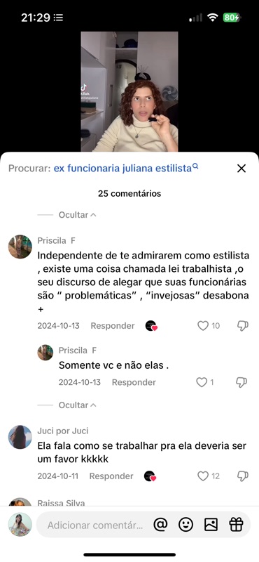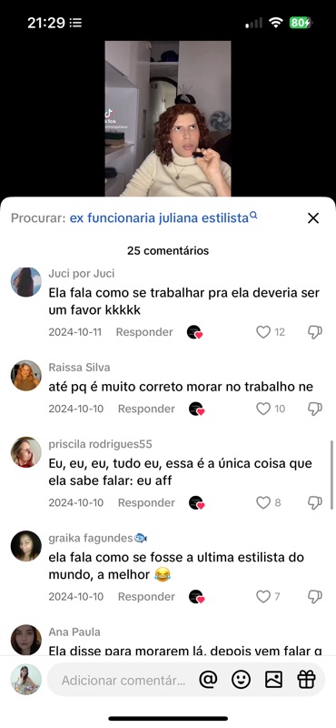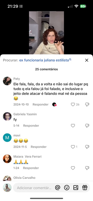 - “Ela fala como se fosse a última estilista do mundo, a melhor 😂” – Tentativa de ridicularização pública.