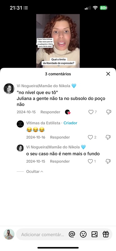 Se há uma invasão de privacidade aqui, ela começou quando passaram a printar minhas fotos, distorcer falas, manipular vídeos e me transformar em alvo público. Tudo isso sob o pretexto de “denúncia”.