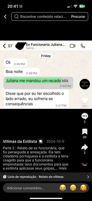 No dia 09/10/2024, o perfil “Vítimas da Estilista” publicou o “Parte 2 | Relato de ex-