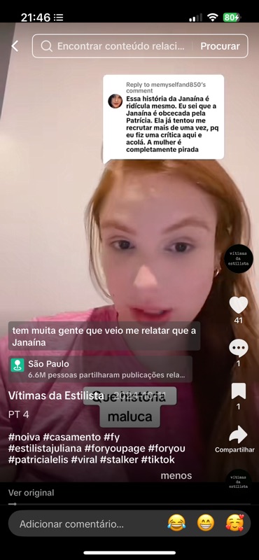 Post 26 a 30- Vítimas do TikTok- Patrícia fala sobre Janaína