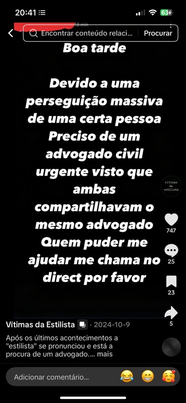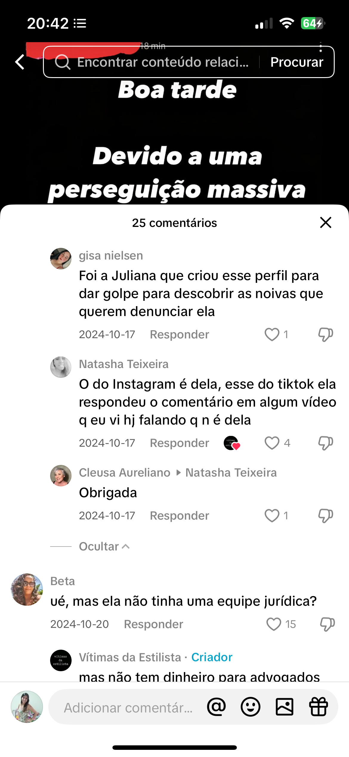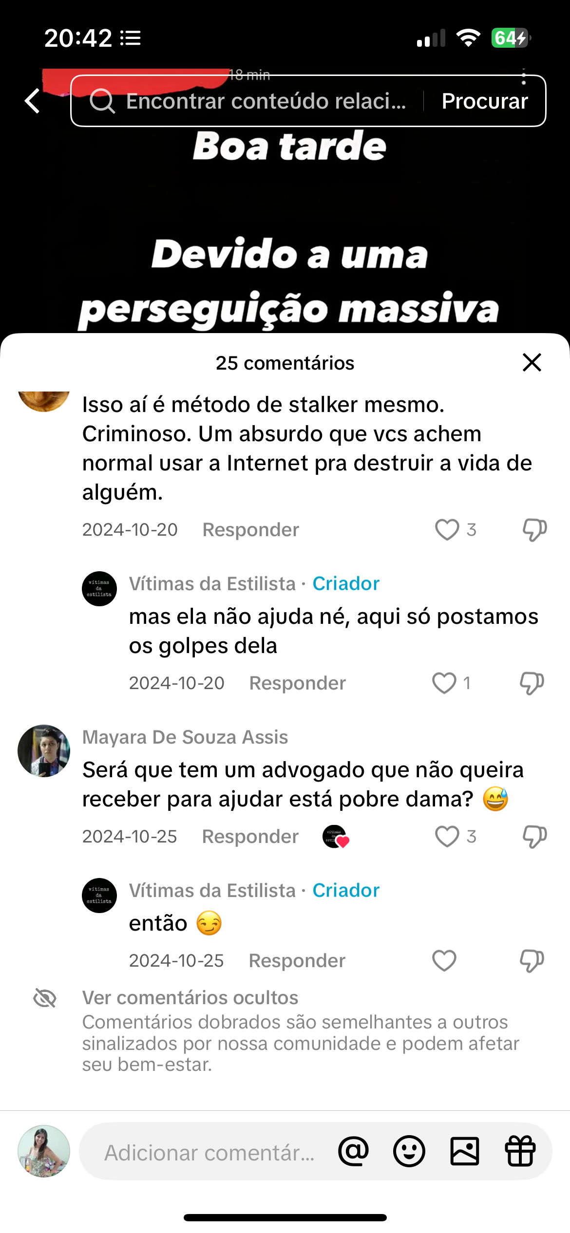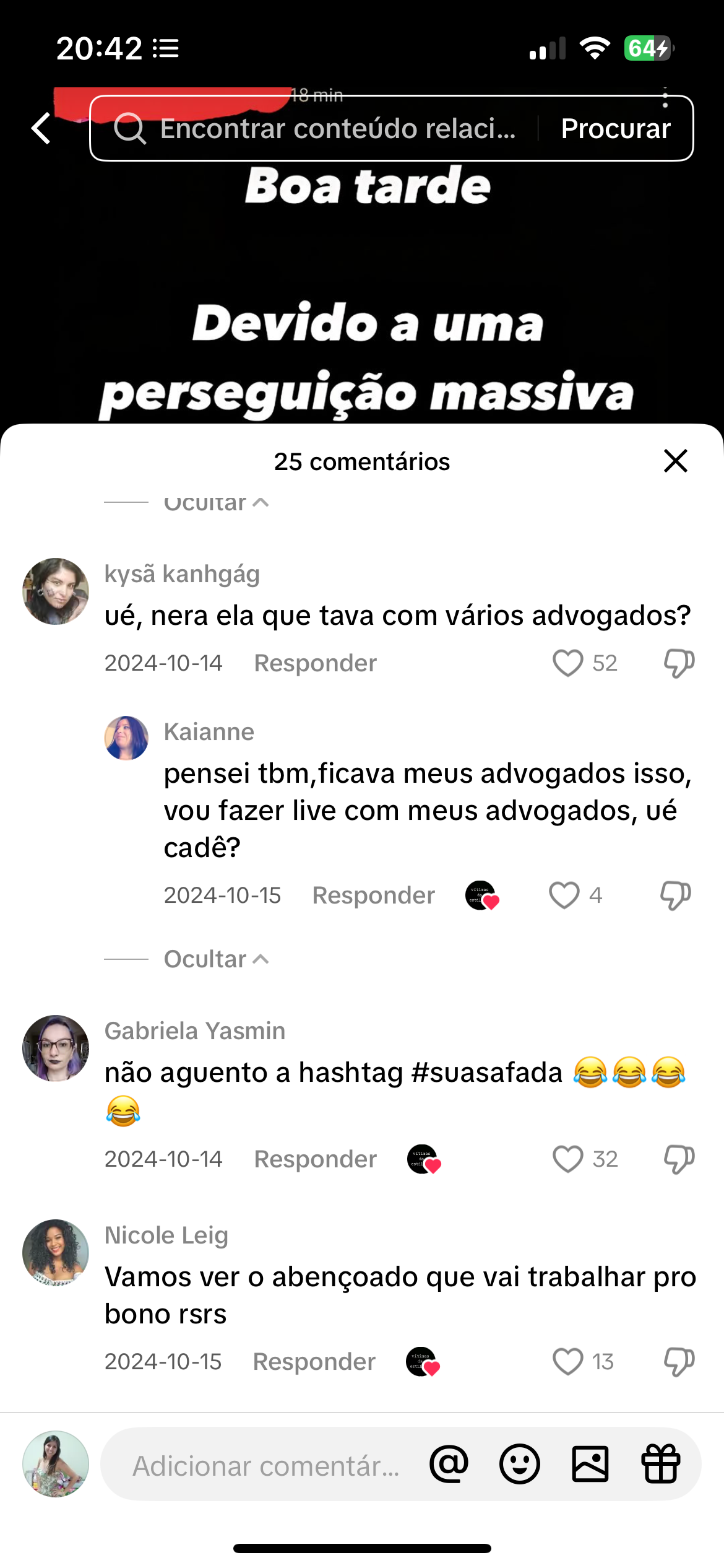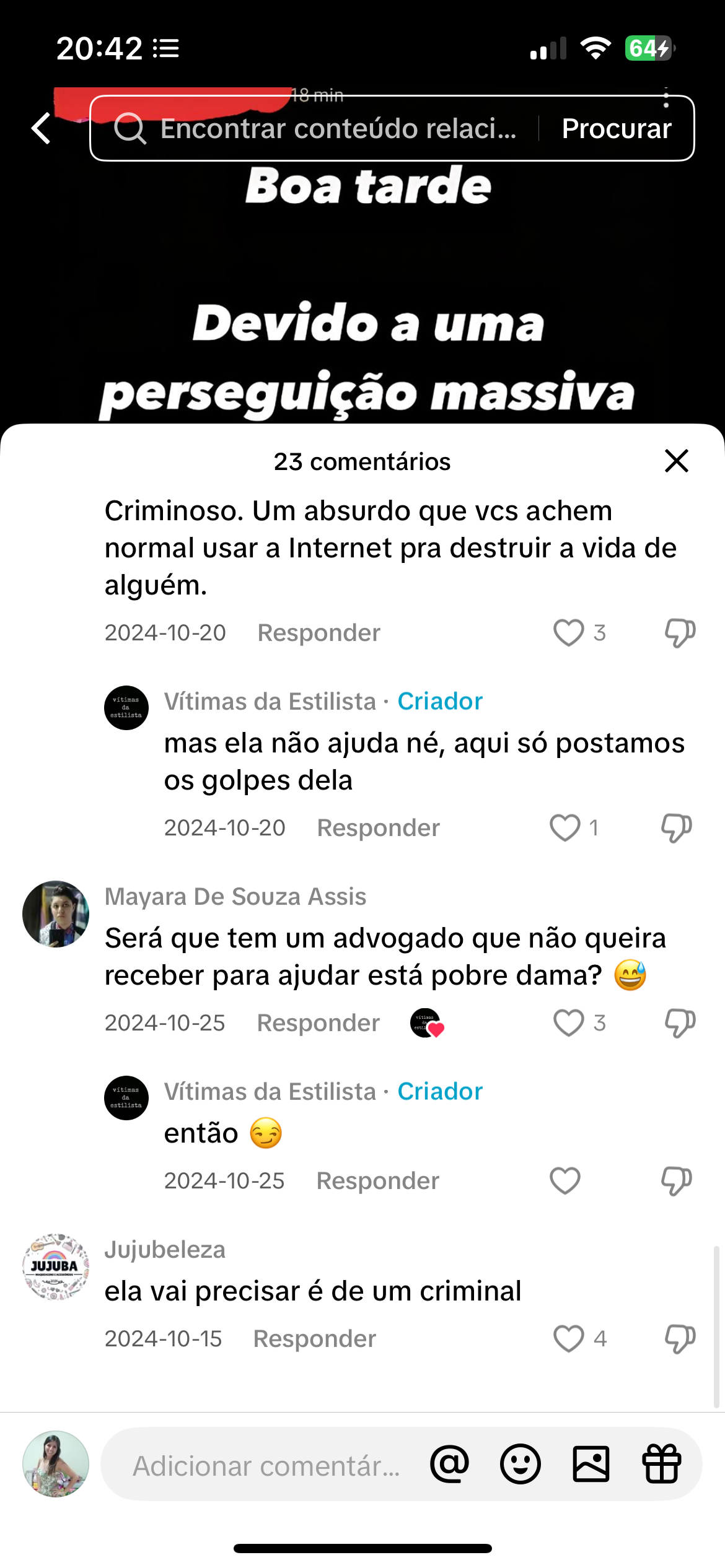 denunciar ela.”13. “O do Instagram é dela, esse do TikTok ela respondeu o comentário em algum vídeo que