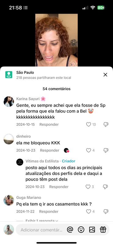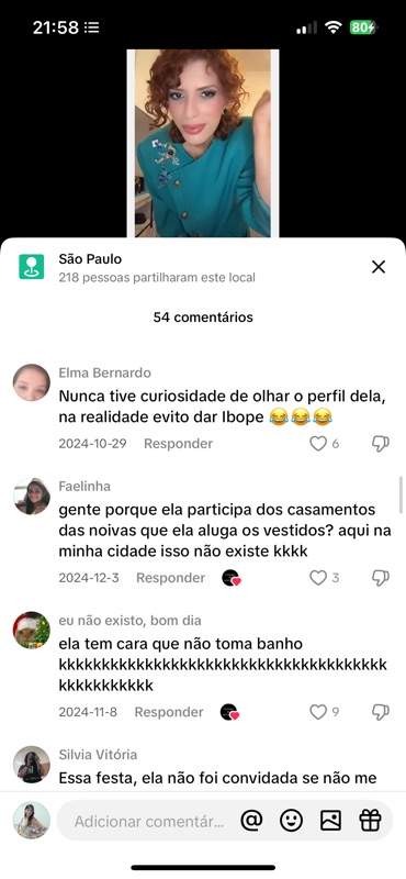 No Post 38 do perfil “Vítimas da Estilista”, o que deveria ser apenas uma sequência de stories meus — me arrumando, vestindo uma noiva querida e participando de sua festa — se transforma, mais uma vez, em palco de humilhação pública. Com 54 comentários, a publicação virou espaço aberto para ataques, chacotas, julgamentos e falas criminosas — muitos deles validados por curtidas da própria página que se diz “denunciante”.