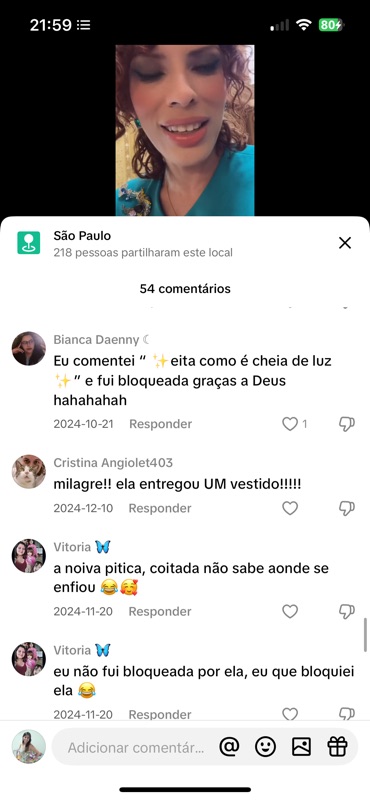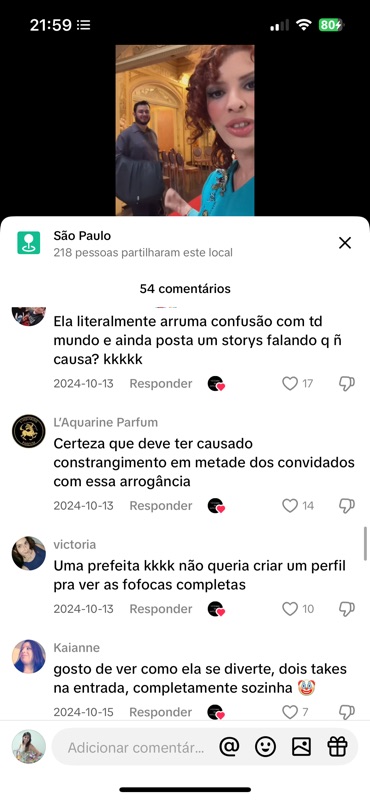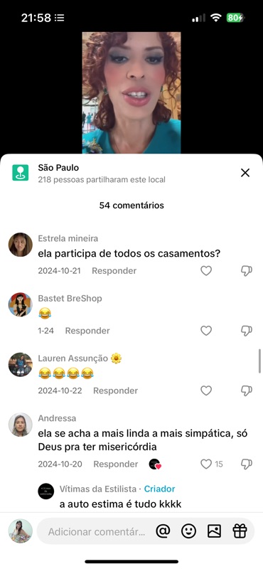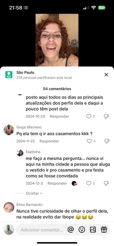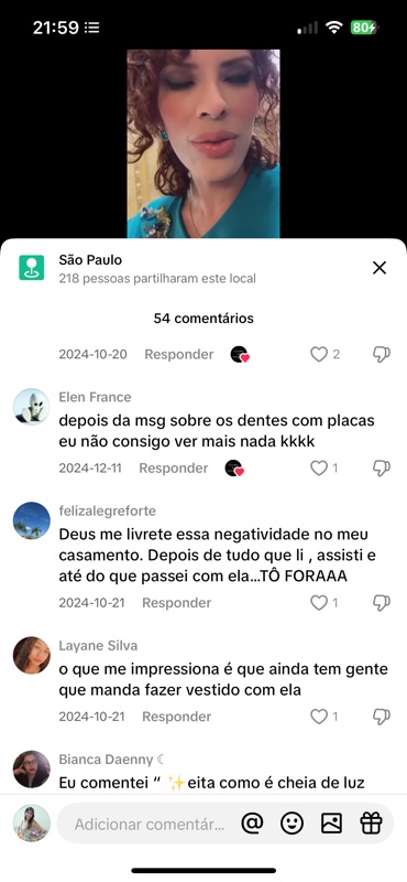 O vídeo gerou 54 comentários, a maioria com teor de ódio gratuito. Vamos analisar todos a seguir. Mas já adianto: o nível de agressividade não se justifica por nenhum motivo além da inveja, do incômodo com a minha luz, e da necessidade cruel de transformar momentos de alegria em munição para perseguição.