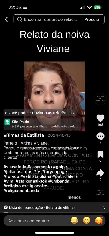 Post 42- vítimas TikTok - denúncia noiva viviane