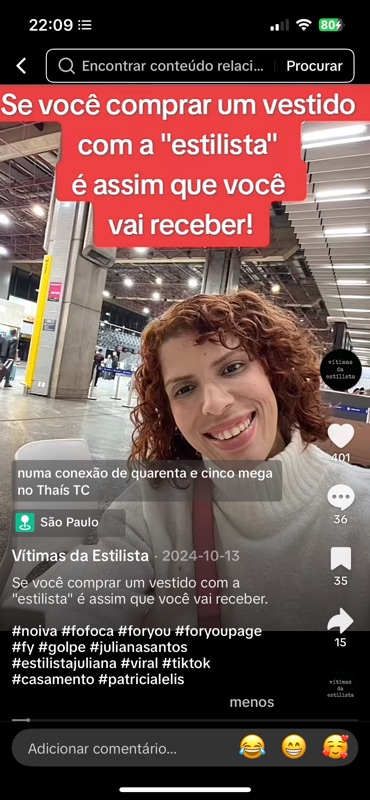 Post 46- Vítimas do TikTok - entrega no aeroporto de um vestido