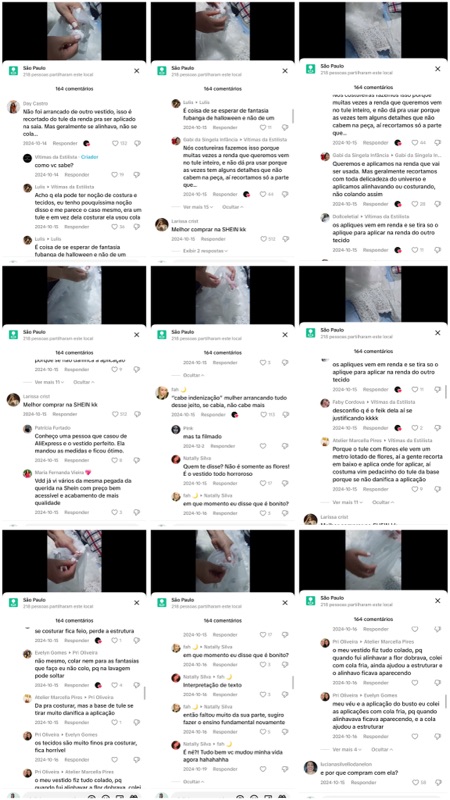 - Comentários que se passam por costureiras para tentar validar a crítica, como: “Sou modelista e isso é um lixo”, sem comprovação de identidade.