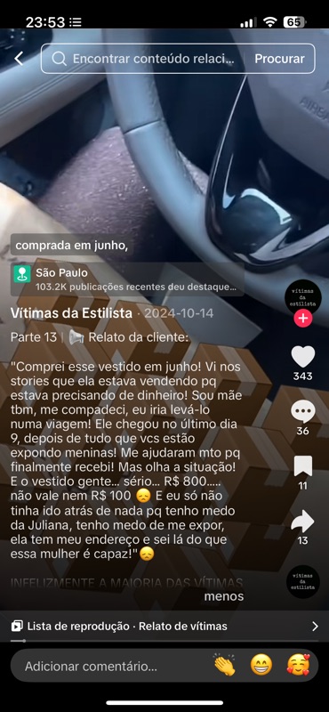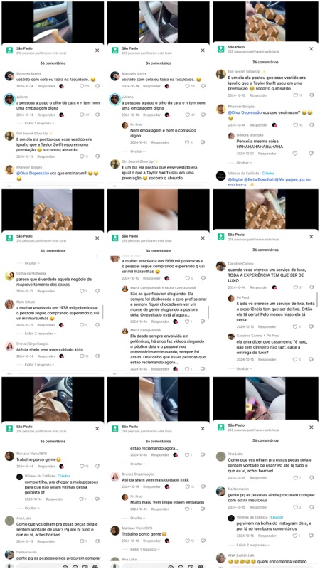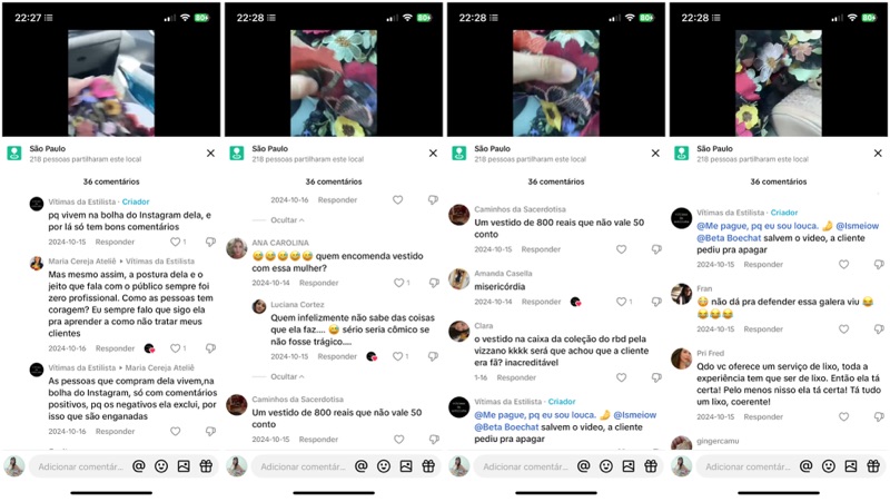 - “Compartilha, pra chegar a mais pessoas pra que vejam que a Juliana é golpista pf” (comentário do próprio perfil “Vítimas da Estilista”)