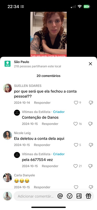 Plataforma: TikTok – perfil “Vítimas da Estilista”