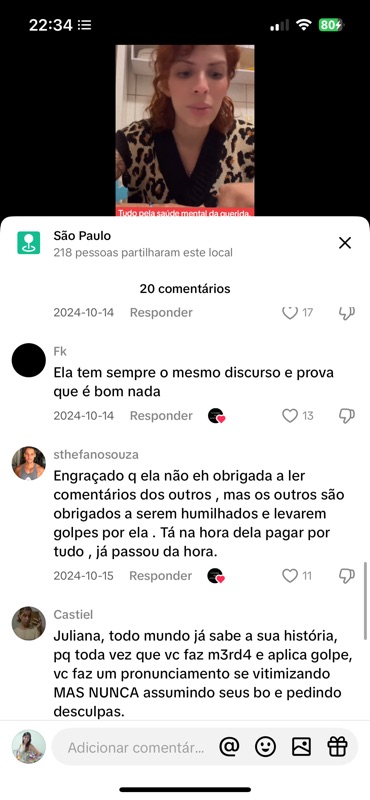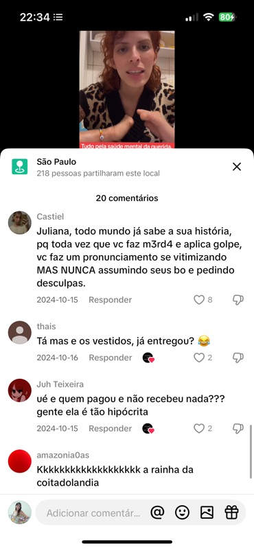 - “Juliana, todo mundo já sabe sua história… você faz m3rd4 e aplica golpe”