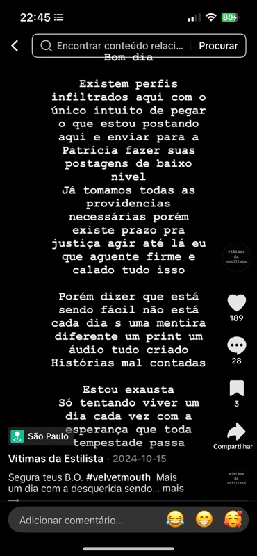 Análise do Post 66 — Página “Vítimas da Estilista”