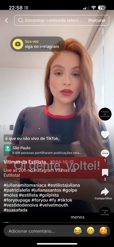 Post 71 e 72 - Vítimas do TikTok - vídeos Patrícia