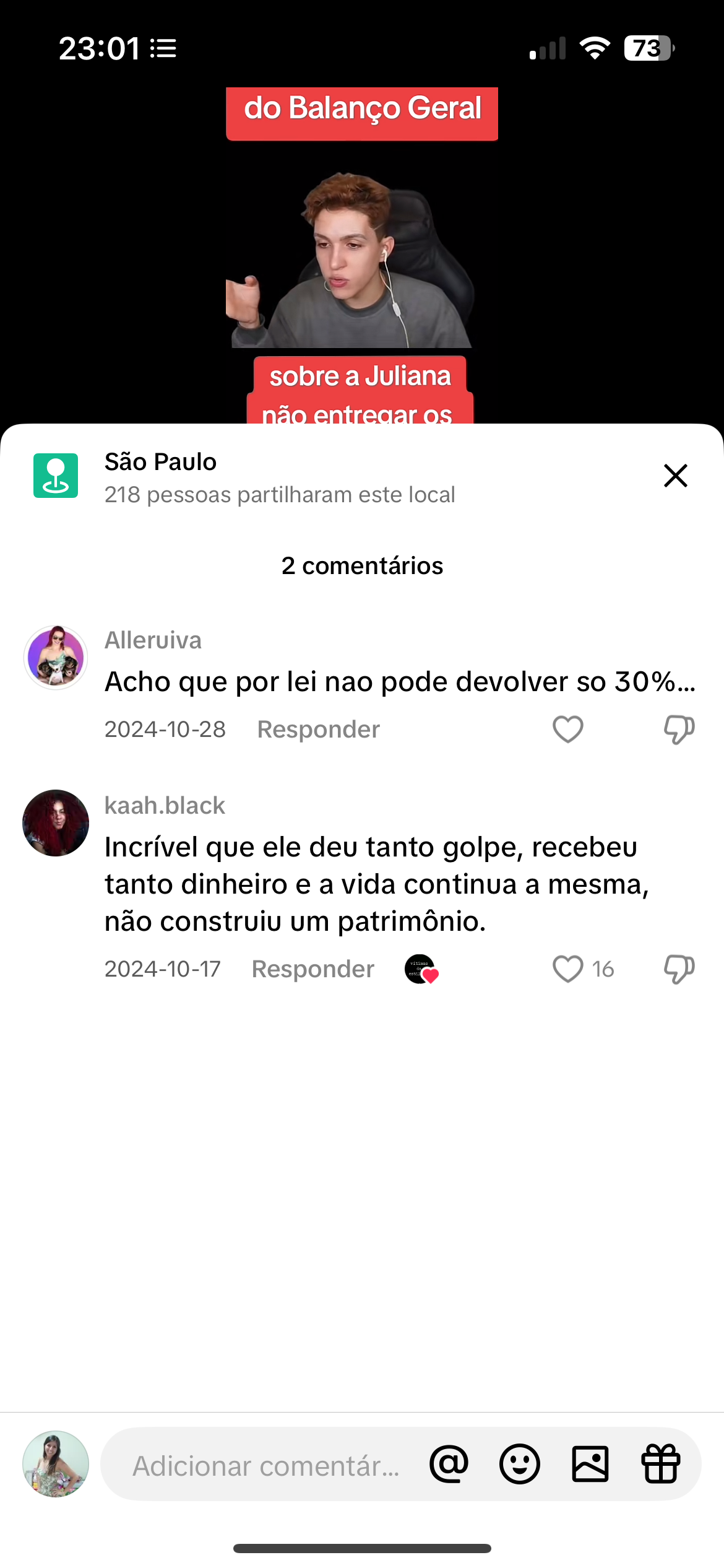 Ambos os posts são recortes de um vídeo publicado originalmente no canal do youtuber Ismael, que já foi identificado como um dos principais nomes a lucrar e impulsionar os ataques contra Juliana Aurora. Ao invés de repostar diretamente o conteúdo da matéria do “Balanço Geral”, o perfil “Vítimas da Estilista” opta por usar a imagem e a reação de Ismael como estratégia para amplificar o alcance, dado o volume de visualizações que o canal dele atraiu.