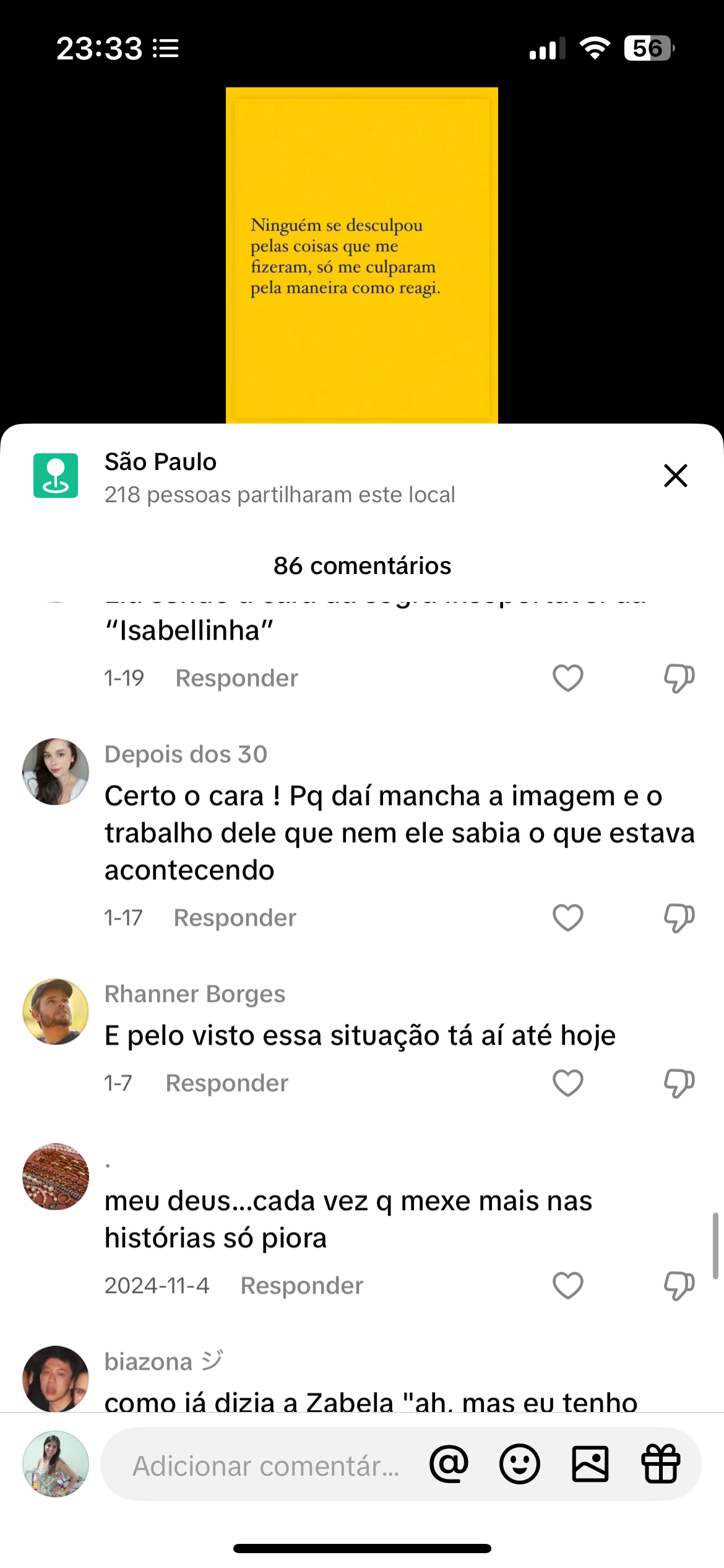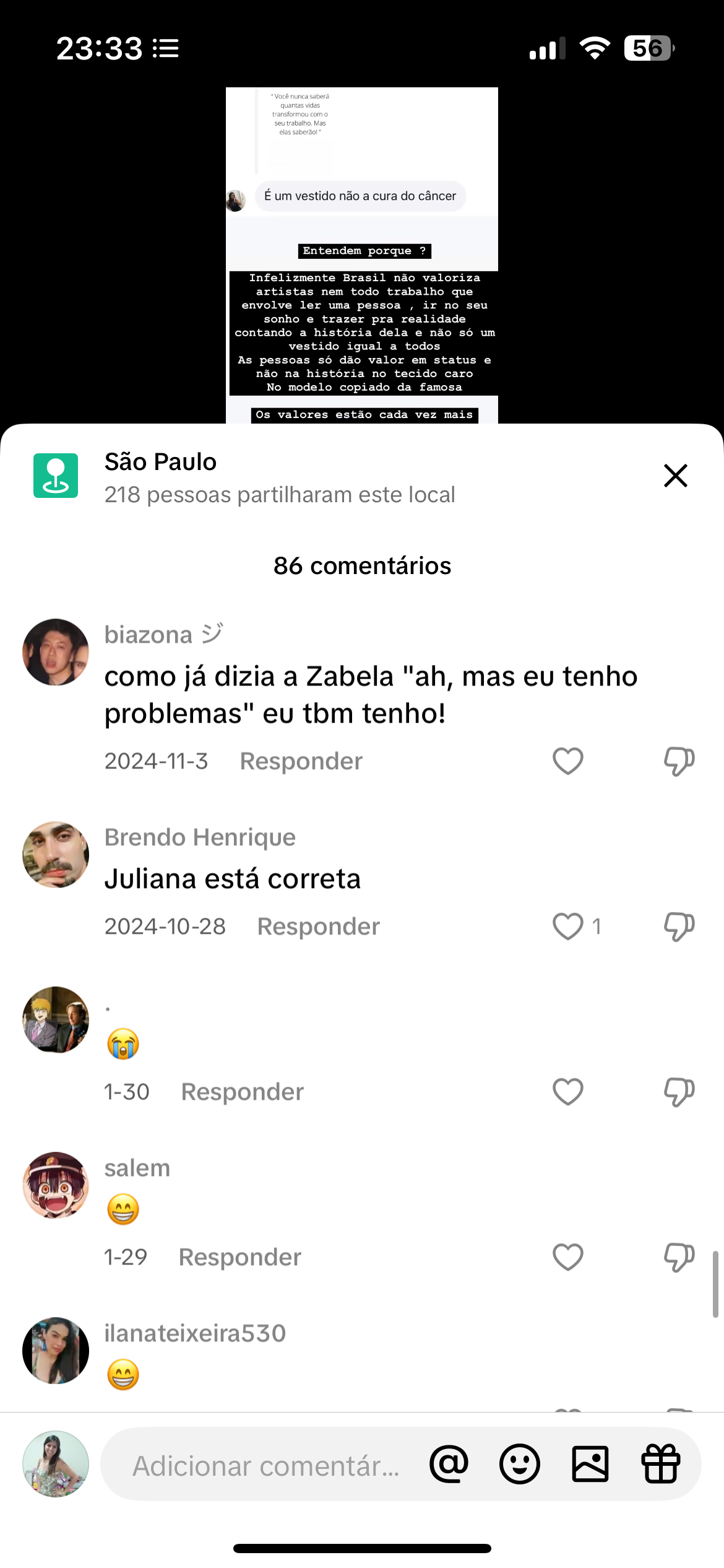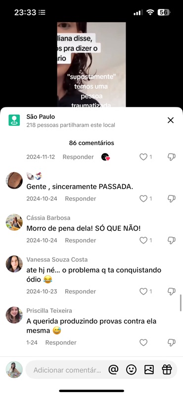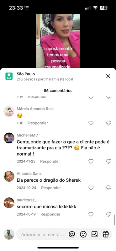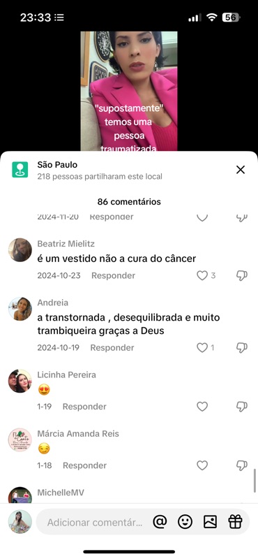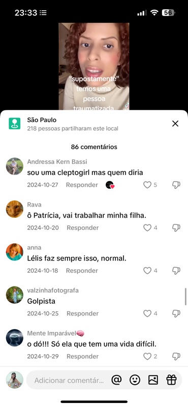 A seção de comentários desse post se tornou um espaço de linchamento virtual alimentado pela própria página. As interações não só reforçam a narrativa falsa do vídeo, como também configuram crimes de difamação, injúria, calúnia, cyberbullying e incitação ao ódio.