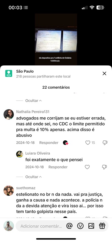 Usuários propagam desinformação sobre multas contratuais (“no CDC o limite é 10%, acima disso é abuso”) sem base legal — ignorando que contratos sob medida seguem lógicas distintas, conforme acordado entre as partes e jurisprudência da área.