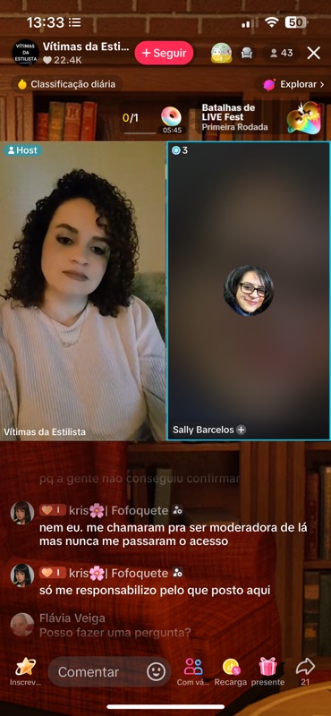 Pela primeira vez, a criadora da página se identifica como Tatiana Santos — uma das vozes mais ativas nas lives. A admissão da identidade enfraquece o argumento de anonimato e joga luz sobre as responsabilidades jurídicas de tudo que foi publicado.