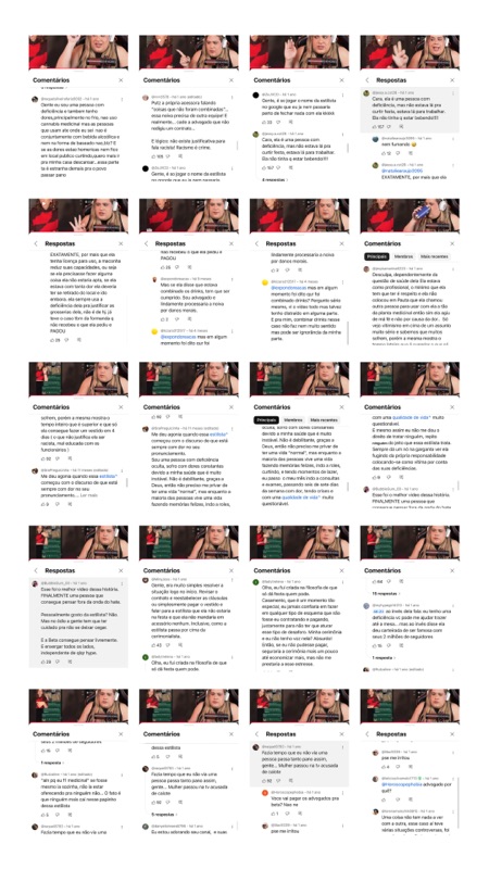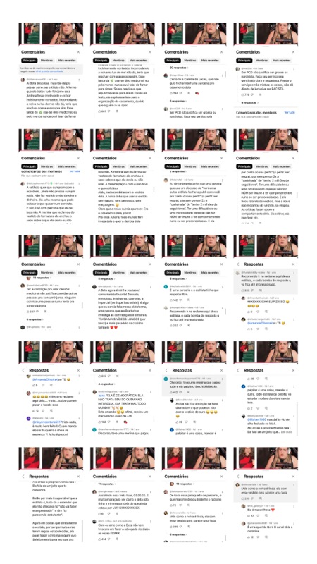 Neste momento, daremos continuidade à análise do material publicado pelo perfil “Vítimas da Estilista”, retornando à avaliação dos comentários dos vídeos da Beta em etapa posterior.