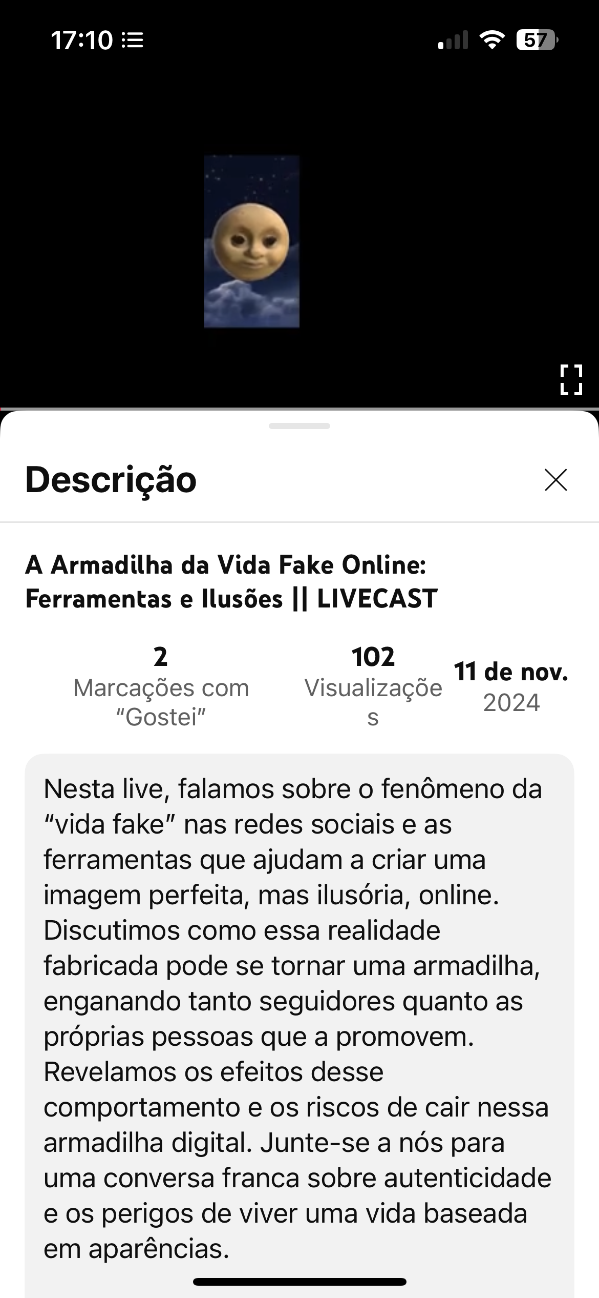 Logo no início, a convidada Cris e as administradoras da página introduzem o tema da live como “a vida fake nas redes sociais”. Entretanto, em vez de abordar o assunto de forma ampla, todas as falas começam a se direcionar exclusivamente a mim, Juliana Santos, sugerindo que meu perfil e minha trajetória seriam um exemplo clássico desse comportamento.