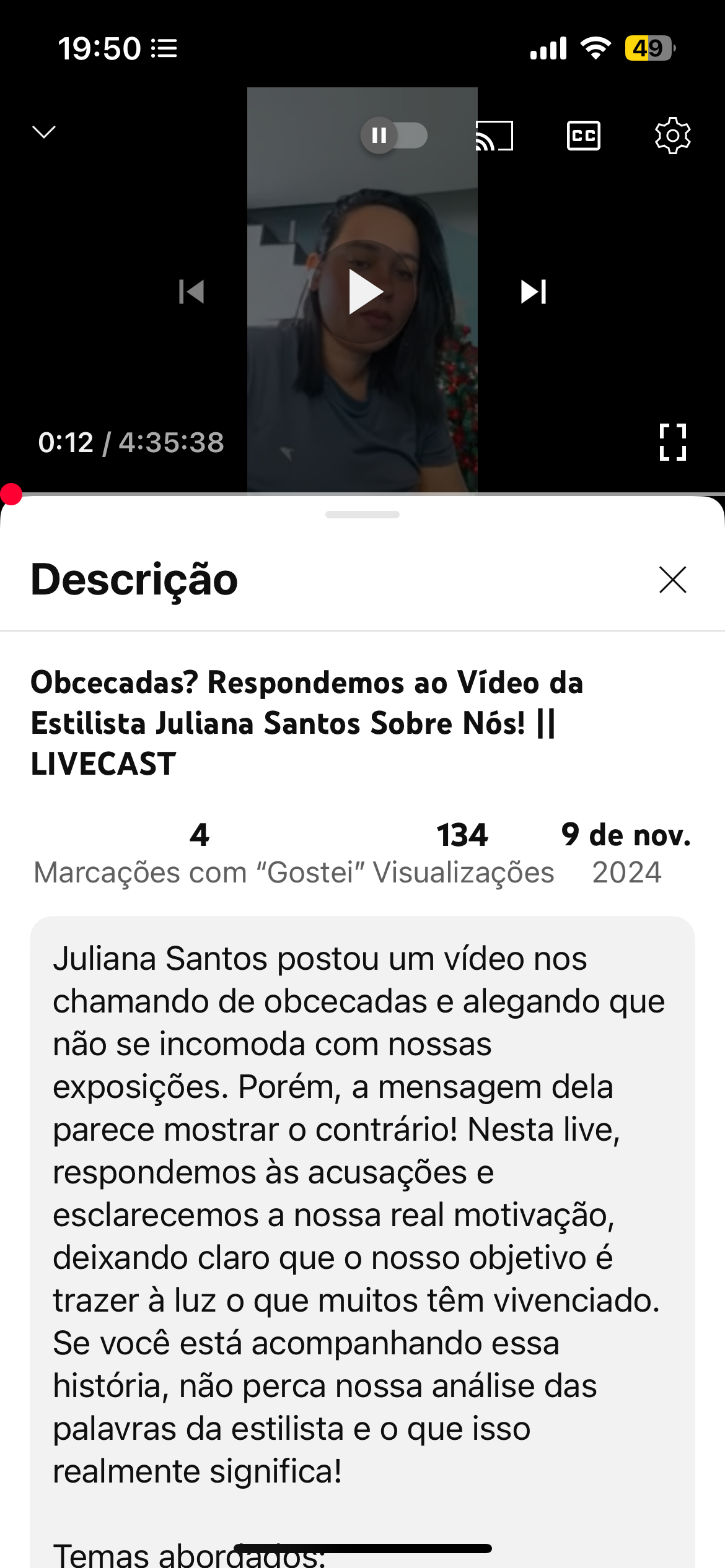 • Título: “Obcecadas? Respondemos ao Vídeo da Estilista Juliana Santos Sobre Nós! || LIVECAST”.
