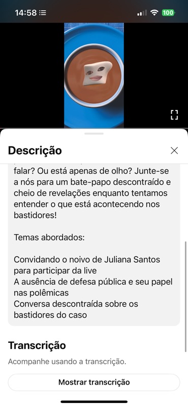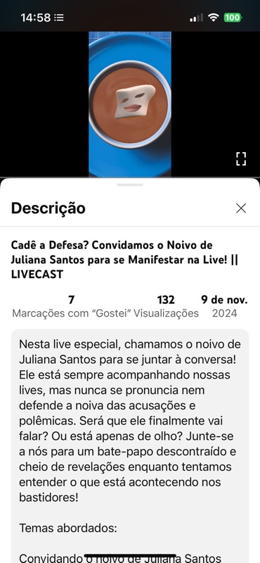 🎥 Conteúdo: Livecast convidando o noivo de Juliana Santos para se pronunciar
