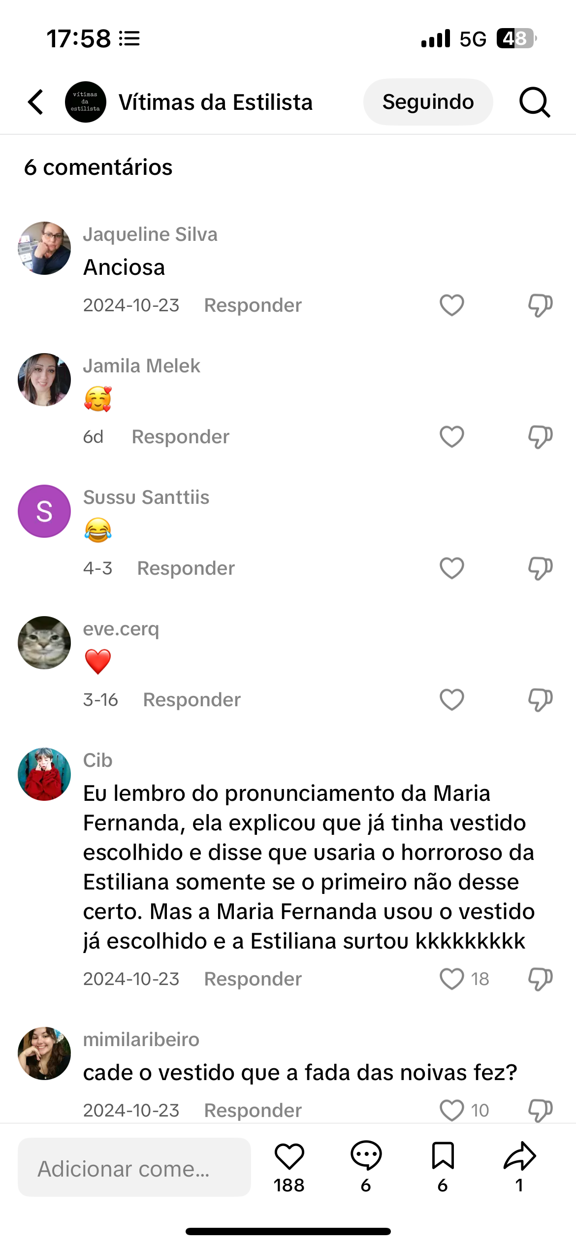 Dos 6 comentários, já é possível notar o padrão de deboche e distorção: