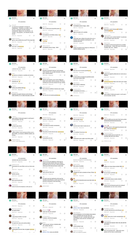 Neste post, foram registrados mais de 370 comentários, sendo a esmagadora maioria composta por mensagens de humilhação, deboche, difamação e ataques pessoais direcionados à minha imagem, minha trajetória e minha postura profissional. O padrão é claro: quase todos esses comentários negativos são curtidos e muitas vezes respondidos pela própria página “Vítimas da Estilista”, o que evidencia o incentivo ativo ao hate e ao linchamento virtual, comprovando o objetivo de promover humilhação pública e reforçar a narrativa mentirosa construída contra mim.