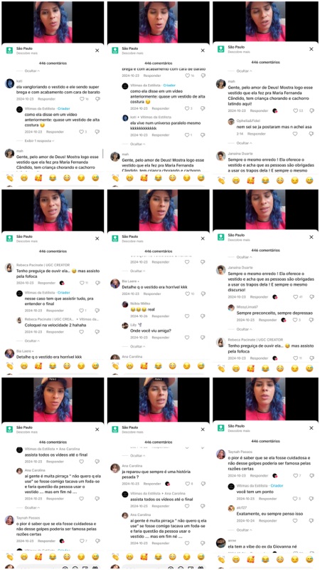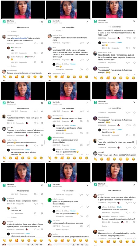 O bloco de comentários analisado comprova, mais uma vez, o padrão recorrente de linchamento público, distorção da verdade e incentivo ao ódio promovido pela página Vítimas da Estilista. O vídeo original — que deveria ser interpretado dentro do seu contexto, apresentando uma experiência profissional legítima e um desabafo pessoal — é sistematicamente recortado, manipulado e utilizado para alimentar uma narrativa maliciosa, completamente desconectada da realidade dos fatos.