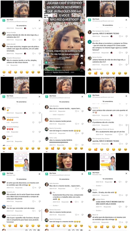 - Mentira reforçada coletivamente: mesmo sem prova, usuários repetem que não é o mesmo tecido ou que você não entrega vestidos, criando uma “verdade fabricada”.