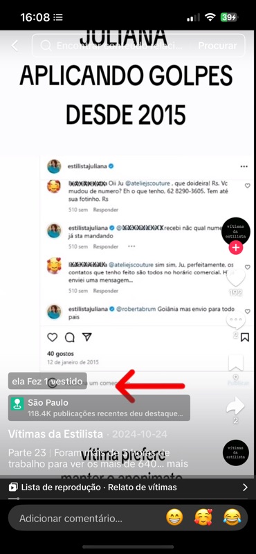 Mais uma vez, o perfil “Vítimas da Estilista” apresenta um suposto “relato de vítima” que, quando analisado com um mínimo de lógica, não se sustenta. O conteúdo deste post é baseado em duas “provas”: