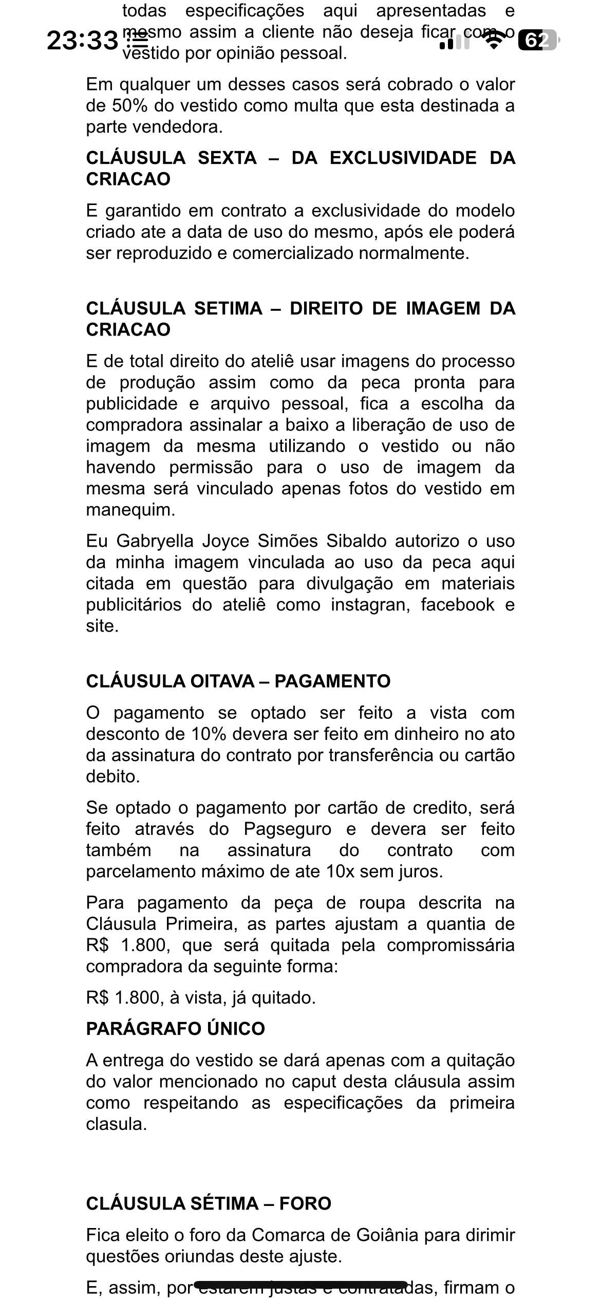 - Outubro/2016: Afirma não ter condições de viajar e exige que eu faça o vestido mesmo assim. Eu reitero que é impossível sem prova física, principalmente devido ao tamanho e ajustes necessários.