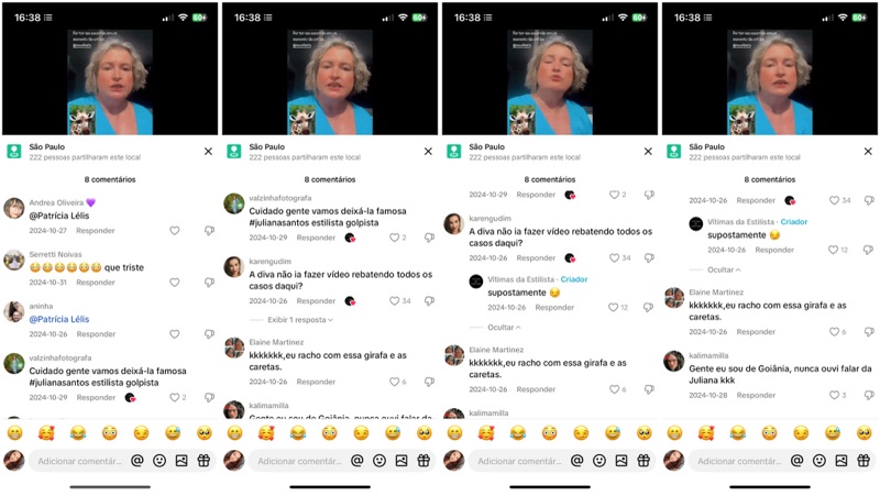 Esses comentários demonstram claramente um padrão de ataques coordenados, com a repetição das mesmas falsas acusações de “golpe” e “estelionato”, acompanhadas de ofensas pessoais e ameaças veladas. Não se trata de críticas ou reclamações legítimas, mas sim de crimes contra a honra, configurando calúnia, difamação, injúria e perseguição virtual.