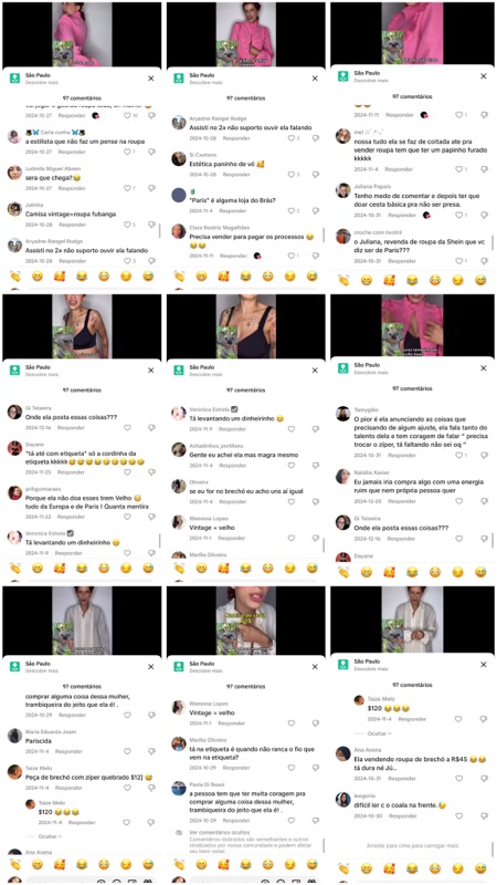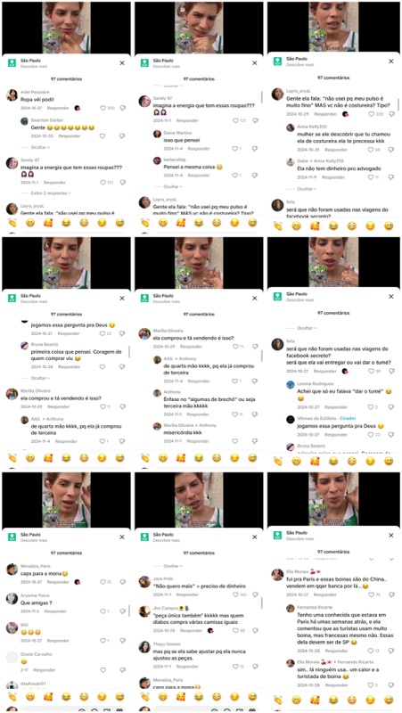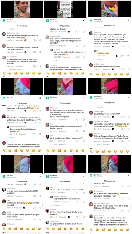 Além disso, todas as peças que postei no bazar foram expostas na sequência, virando alvo para que seguidores da página destilassem ódio e deboches nos comentários. O que para mim era apenas um momento de desapego e organização da vida virou combustível para perseguição virtual, reforçando o padrão de comportamento dessa página: pegar situações banais, descontextualizá-las e incentivar o público a me atacar sem qualquer justificativa real.