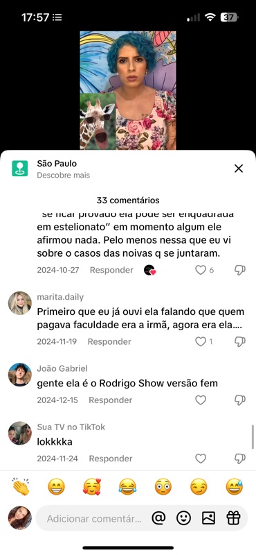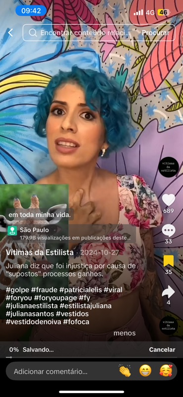 Mais uma vez, o perfil “Vítimas da Estilista” retira de contexto um vídeo antigo de Juliana Santos – dessa vez, originalmente publicado em 2021 – e reapresenta o conteúdo como se fosse uma fala recente ou relacionada a processos inexistentes. O vídeo tem um tom claramente pessoal e opinativo, com desabafos sobre sua história profissional, dificuldades financeiras na época da faculdade, e comentários irônicos sobre calúnias sofridas no passado.