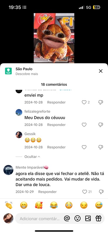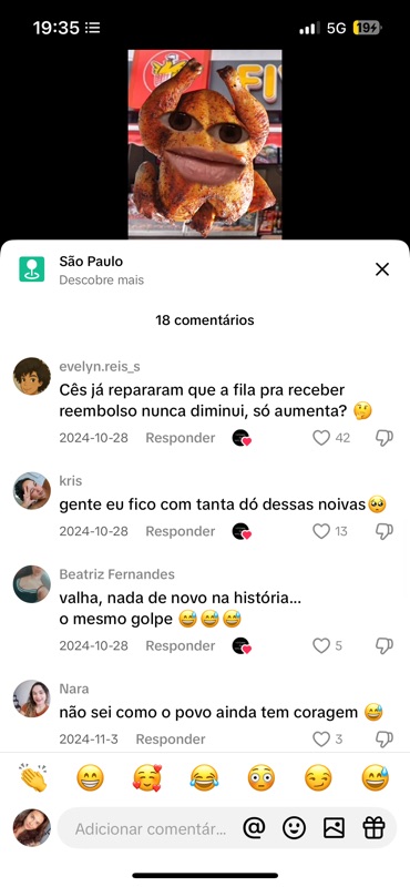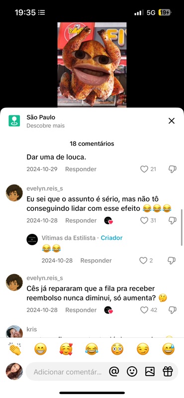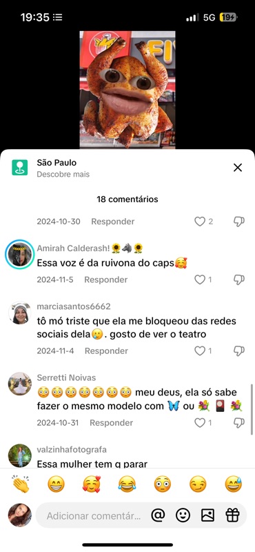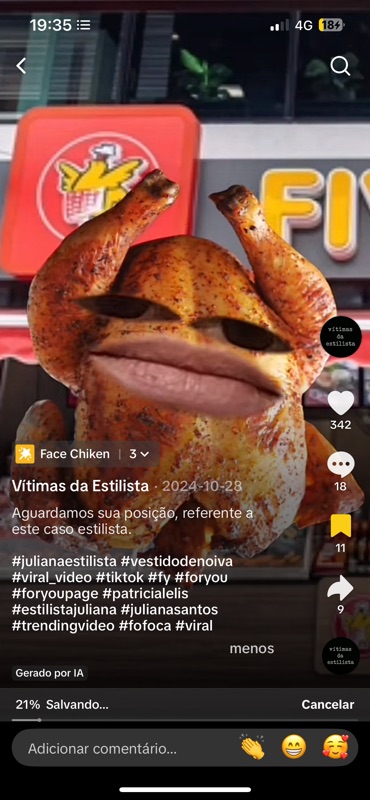 Outro ponto importante deste post é o uso do filtro de frango no vídeo. Nessa época, Tatiana Santos (administradora da página) ainda não havia se revelado publicamente, escondendo o rosto atrás de filtros de animais para atacar e difamar sem se identificar. Apenas semanas depois, quando acreditou estar “protegida”, ela começou a aparecer sem filtros, acreditando que jamais seria responsabilizada judicialmente pelos crimes cometidos.