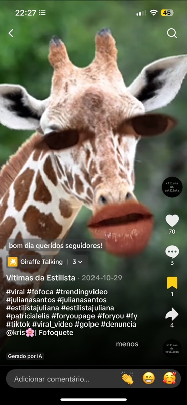 - Humilhação pública – Uso do filtro de girafa para ridicularizar a profissional.