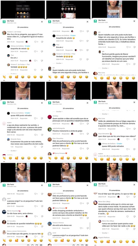 Só que o que a página “Vítimas da Estilista” fez foi distorcer completamente o contexto. Pegaram meu vídeo público, que eu postei tanto no Instagram quanto no TikTok, e inventaram uma história de que ele foi gravado para uma cliente específica que teria enviado para elas. Isso é mentira. É manipulação pura para criar narrativa de mau atendimento, quando na realidade o vídeo falava de algo geral e previsto em contrato.
