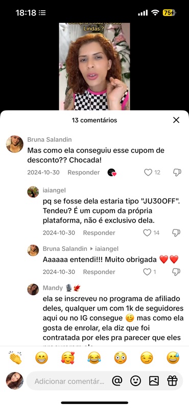 - Comentário (Iaiaangel): “pq se fosse dela estaria tipo ‘JU30OFF’… não é exclusivo dela.”
