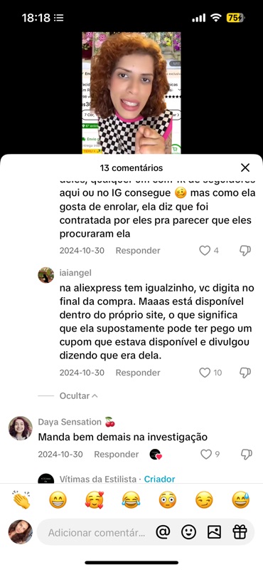 Primeiro ponto: o que exatamente seria o “golpe” alegado? A divulgação que eu fiz partiu de um contato direto da plataforma, via TikTok, onde me foi disponibilizado um código promocional para indicar produtos com desconto. O funcionamento é simples: eu divulgava o código, a pessoa comprava diretamente na plataforma e recebia o produto. O meu pagamento só aconteceria após a confirmação da entrega para o cliente. Portanto, não existe nenhum cenário em que eu pudesse “dar golpe”, já que não vendo nada, não recebo pagamento direto e não tenho controle sobre a logística do aplicativo.
