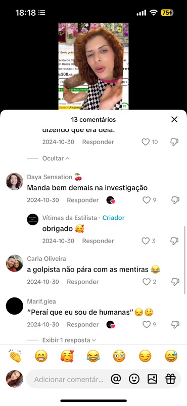 - Apoio público do próprio perfil “Vítimas da Estilista” aos ataques