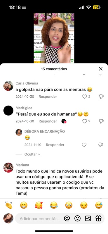 - Comentário (Mariana): “Eu tenho Temu e também tenho esse código. Não é parceria.”