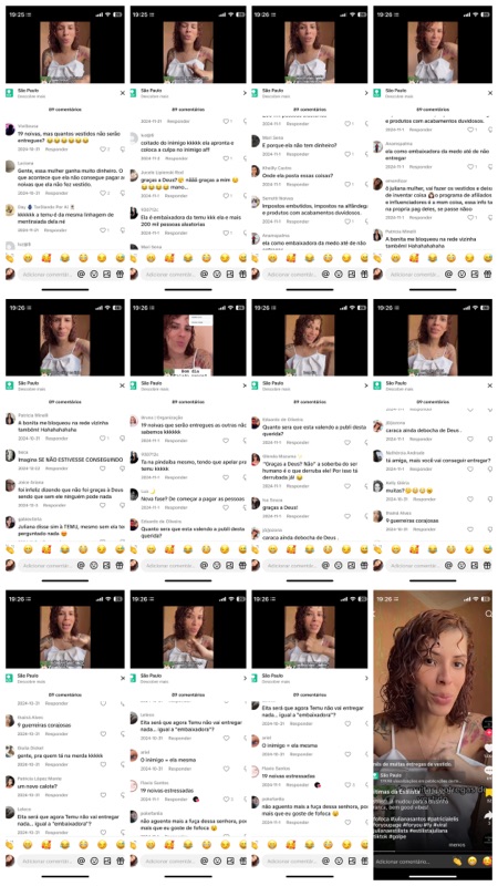 - “Quem acredita que são 19 noivas levanta a mão”, “Agora até a Temu vai ser processada?”, “A nova fase dela é enganar a Temu”.