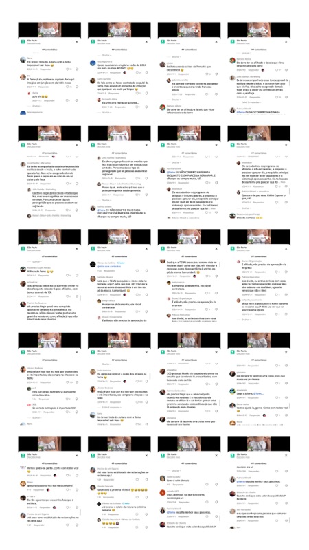 - Ex: “Espero que a Temu pesquise o nome dela no Reclame Aqui antes de fechar parceria”, “Vamos ajudar gente, conta com todos vocês!”