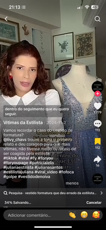 “Vamos recordar o caso do vestido de formatura? @livy_chavs trouxe à tona o primeiro relato e deu coragem para que mais vítimas, não tivesse medo ou receio de ser coagida pela estilista.”